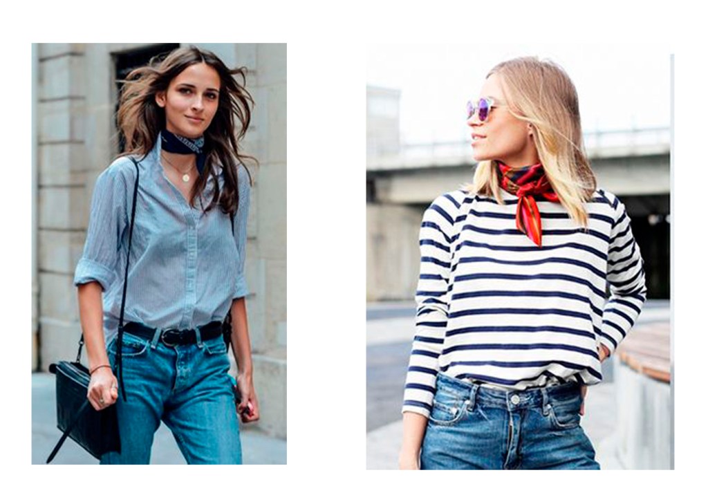 O tão antigo lenço no pescoço voltou! Um dos mais usados é o mix com o colar, sobre a blusa, tipo gravata, bem justa ou solta sobre o casaco.