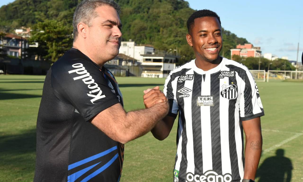 Robinho pode estrear com a camisa 7 do Santos já nesta quarta-feira (14), contra o Atlético-GO do goleiro Jean, que foi preso em flagrante, nos Estados Unidos, acusado de agredir a esposa.