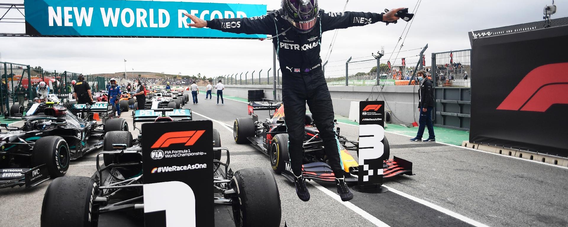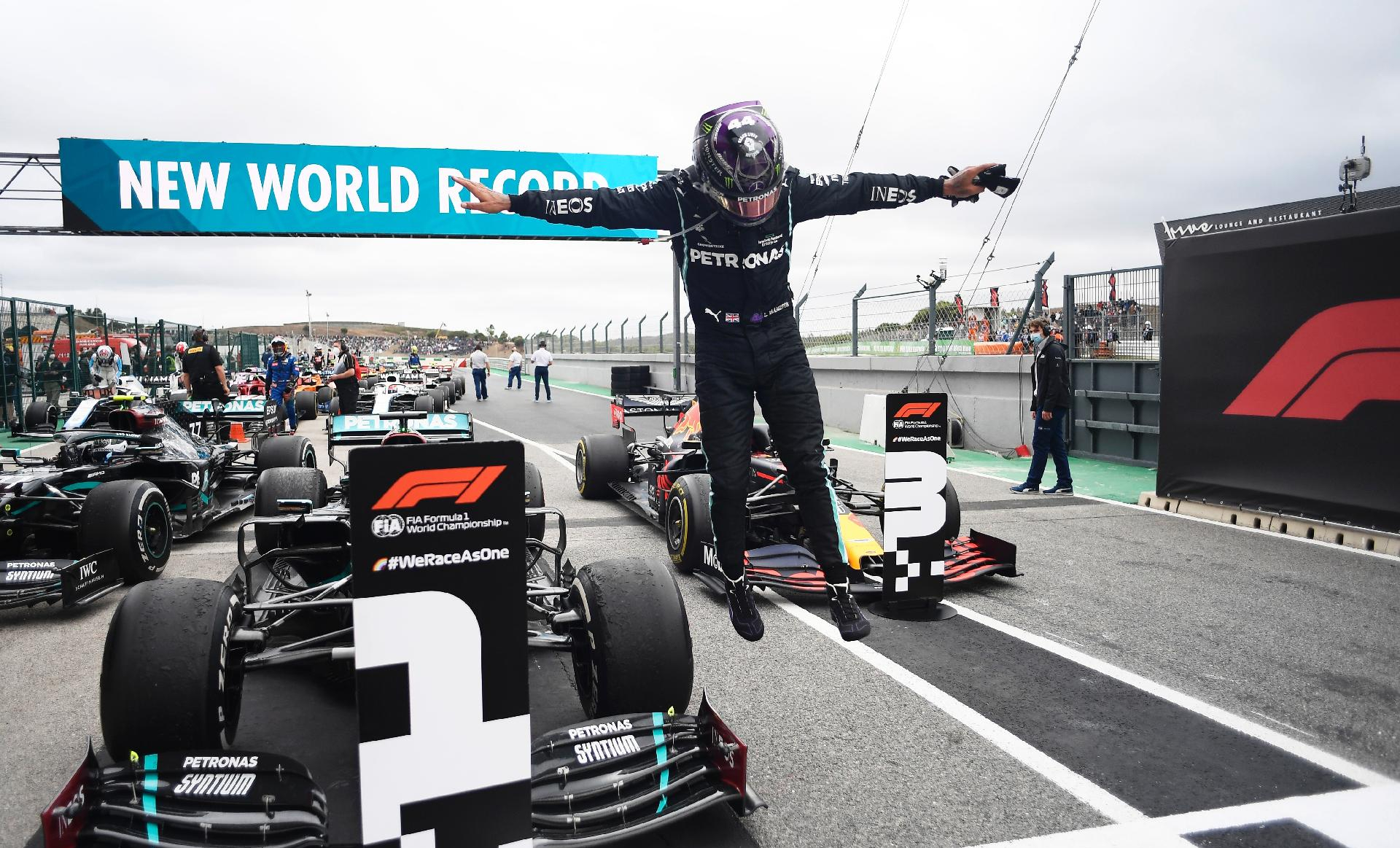 Lewis Hamilton, de 35 anos, venceu neste domingo o Grande Prêmio de Portimão, em Portugal, e chegou a 92ª vitória de sua carreira, se tornando o piloto com mais vitórias na Fórmula 1, superando o hepta campeão mundial Michael Schumacher (91). Hamilton, mesmo com câimbras na panturrilha, conseguiu garantir mais uma vitória para a sua carreira. Seu companheiro de equipe, o finlandês Valtteri Bottas, ficou com a segunda colocação. O belga Max Verstappen, da Red Bull Racing, garantiu o 3º lugar e fechou o pódio.