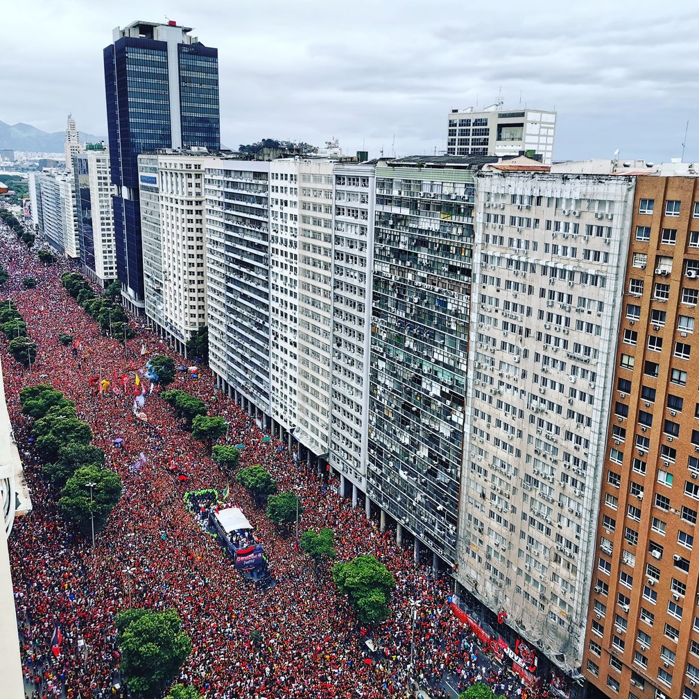 Voltando ao Brasil, logo após a conquista da América, o elenco rubro-negro foi recebido, em um trio elétrico, e foi “abraçado” pela sua torcida com uma linda festa na Avenida Presidente Vargas, centro do Rio. Ainda durante a comemoração, o Palmeiras, segundo colocado do Brasileiro, foi derrotado pelo Grêmio, e fez com que o Flamengo se tornasse heptacampeão nacional ainda em cima do trio. Infelizmente, o final da festa foi marcado por confusão entre torcedores do clube e a Polícia Militar.
