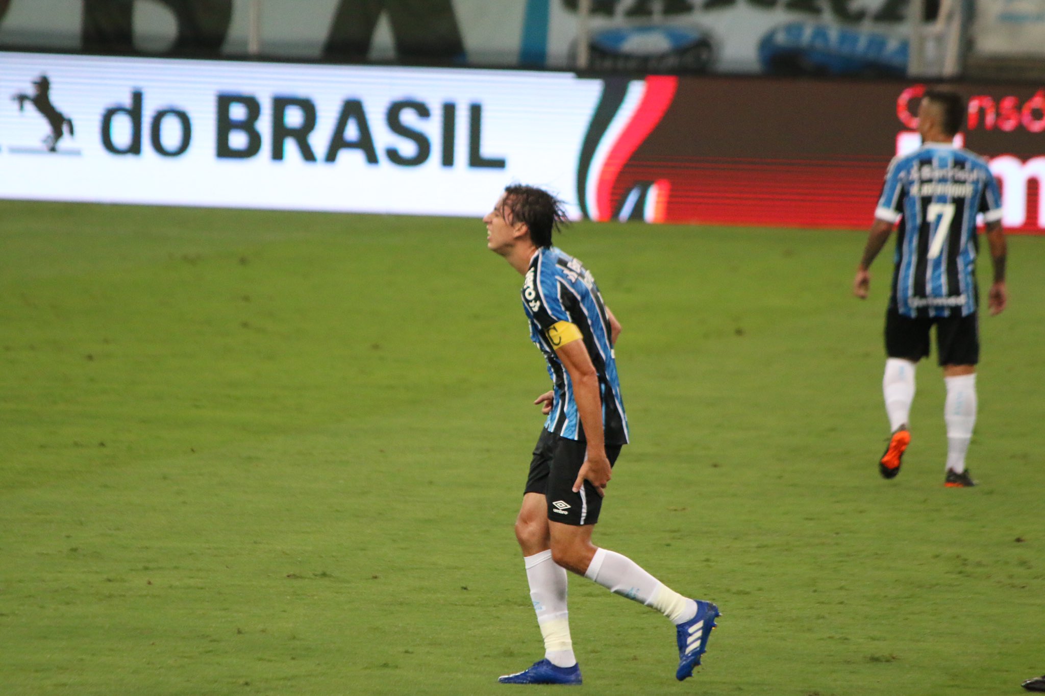 Aos 33 minutos, uma notícia preocupante para o Grêmio: após chute por cima do gol, o zagueiro e capitão da equipe, Pedro Geromel, acabou sentindo a parte posterior da coxa esquerda e teve que deixar o campo, sendo substituído pelo zagueiro Rodrigues.