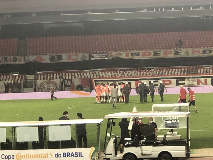Com o jogo finalizado, os jogadores do São Paulo e a comissão técnica foram reclamar da arbitragem, pois queriam mais tempo de acréscimo. O atacante Tréllez e o treinador Fernando Diniz acabaram expulsos. O comentarista de arbitragem da Rede Globo, Sálvio Spínola, tinha concordado com os sete minutos, mas disse que, após o jogo ficar paralisado para atender Toró e Everton caídos no gramado, deveria ser acrescido mais tempo.