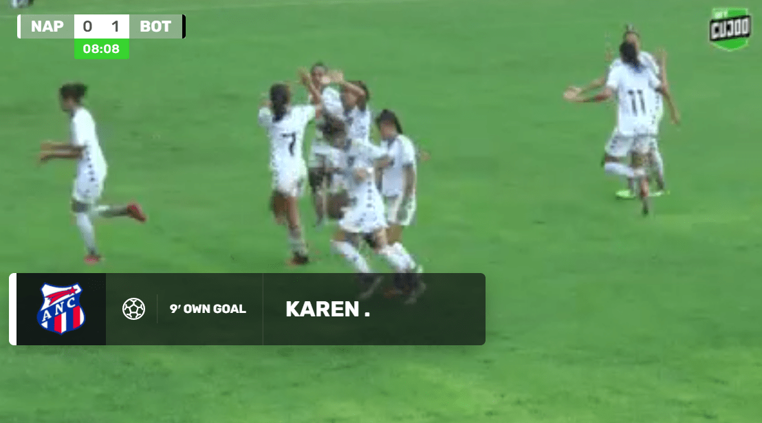 O primeiro gol do jogo de ida da final não demorou a sair. Aos oito minutos, a partir de uma cobrança de falta a favor das Gloriosas, a zagueira adversária Karen tentou mandar a bola para longe, mas pegou de canela e acabou mandando para o fundo da própria rede em gol contra.