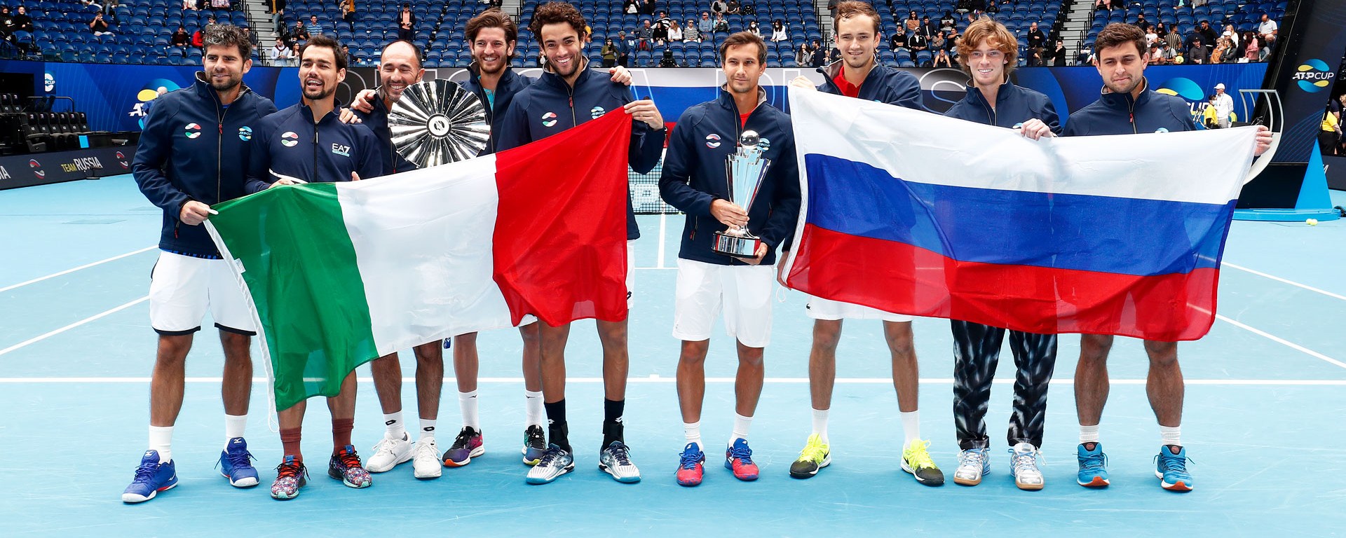 Em cerca de três horas, a Rússia venceu a Itália por 2 a 0 e conquistou a ATP Cup 2021 em uma final tranquila e com domínio de Andrey Rublev e Daniil Medvedev. Os tenistas número quatro e oito do mundo venceram, respectivamente, Fábio Fognini e Matteo Berrettini, que tiveram atuações muito elogiadas durante a semana, mas foram neutralizados durante toda a decisão pelos adversários. Com o título sendo decidido nos jogos de simples, a partida de duplas entre Evgeny Donskoy e Aslan Karatsev contra Andrea Vavassori e Simone Bonelli não foi realizada. Com a vitória, os russos conquistaram 500 pontos na simples, e os duplistas ganharam 250 pontos.