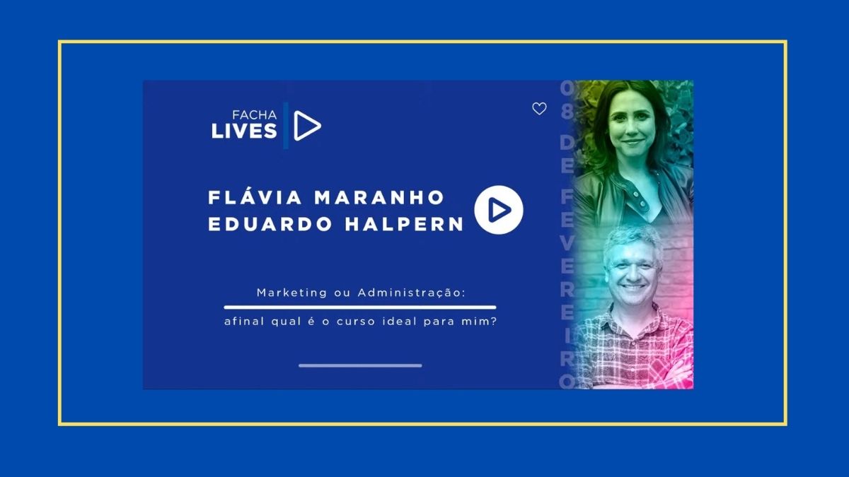 O FACHA Lives desta segunda (08) abordou os cursos de Administração e Marketing e como os alunos podem decidir a carreira a seguir. A coordenadora de ambos os cursos na FACHA, Flávia Maranho, conversou com o diretor acadêmico da instituição e professor universitário, Eduardo Halpern, sobre o assunto.