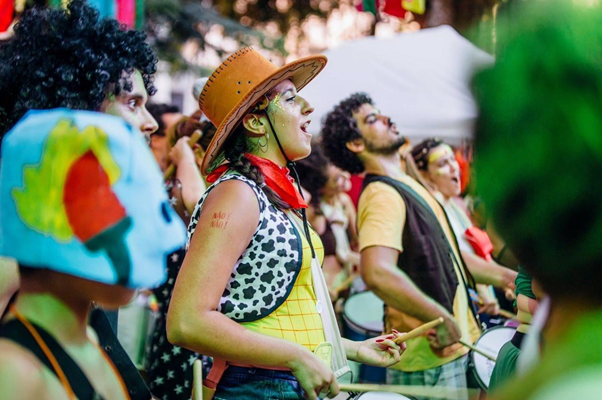 Já Maria Clara Torres, estudante de jornalismo da FACHA, é uma verdadeira apaixonada pelo Carnaval de rua do Rio de Janeiro. Durante alguns anos vem participando como instrumentista do Bloco “Pipoca e Guaraná”, e no último Carnaval com o pipoca se vestiu do famoso personagem “Woody” do desenho animado “Toy Story”. Mesmo com as festividades com o público canceladas esse ano, a empolgação da foliã não diminuiu: “provavelmente vou assistir alguma live, como a do Agytoe, por exemplo. O bom é que são gratuitas!”. Planejando usar diversas perucas e muito brilho em cada dia de carnaval, Maria Clara é enfática ao dizer o que não pode faltar nas comemorações deste ano: “purpurina!”.