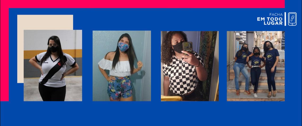 Três alunas da Facha combinam suas roupas com as máscaras e comentam os lugares que estiveram com os looks escolhidos
