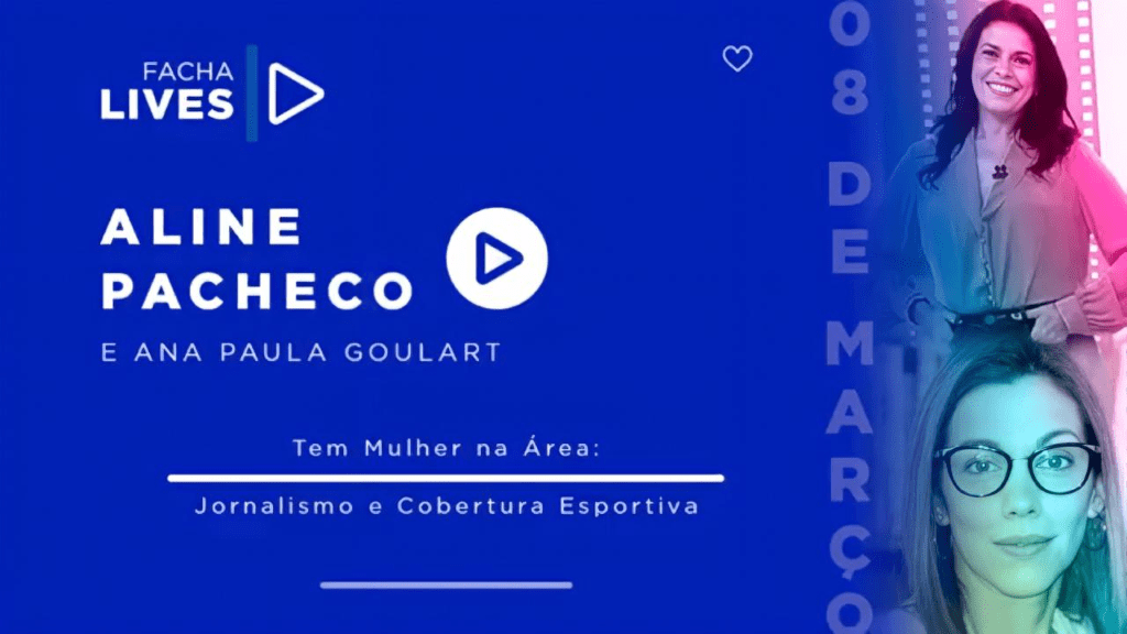 O FACHA Lives desta segunda (8), Dia Internacional da Mulher, celebrou a ocupação de presenças femininas em espaços historicamente preenchido por homens. Na transmissão, a professora e jornalista Ana Paula Goulart, recebeu a repórter e apresentadora Aline Pacheco, da Record TV Rio, para um bate-papo sobre a ocupação da mulher no jornalismo, em especial nas coberturas esportivas.