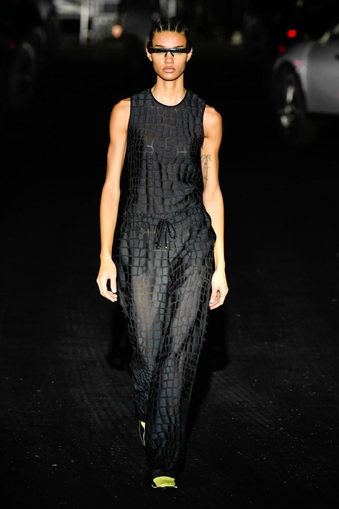 O desfile da marca de roupas Coperni ocorreu no drive-in do Accor Arena