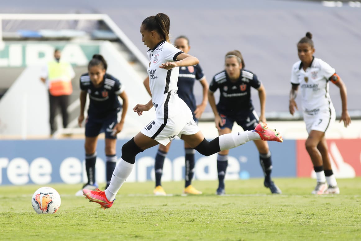 O primeiro tempo de jogo foi de domínio corintiano, que controlou a posse de bola e buscou o gol a todo instante. Abusando dos cruzamentos pela esquerda da capitã Tamires, o Corinthians também esbarrou diversas vezes na goleira das Leoas, Natalia Campos. Apenas aos 34 minutos, após troca de passes e entrada perigosa na área, Gabi Nunes foi derrubada e a Árbitra assinalou a penalidade máxima. Na cobrança, Adriana teve a calma de deslocar a goleira para a esquerda e empurrar a bola para a direita, abrindo o marcador. As chilenas foram cautelosas, se defendendo e tentando sair nos contra-ataques. Porém, faltou velocidade e efetividade na troca de passes, o que não gerou perigo à meta brasileira.
