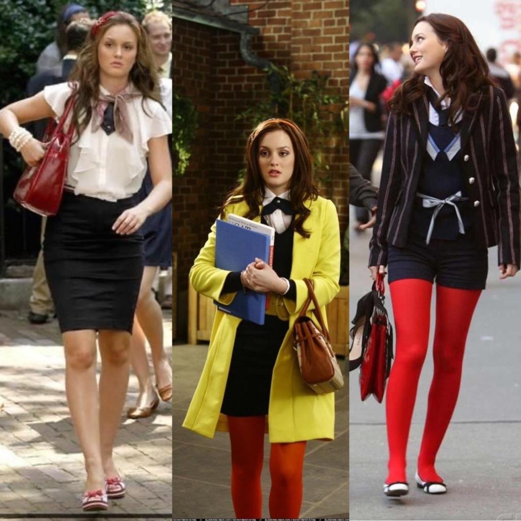 Já Blair Waldorf (interpretada por Leighton Meester), outra personagem principal da trama, além de ser melhor amiga de Serena, é outra referência de estilo. Diferente da amiga, aposta mais no estilo “patricinha”, sem um fio de cabelo fora do lugar. É difícil vê-la sem uma tiara no cabelo, vestido, sapatilha e meia calça, esses itens estão sempre presentes nos seus looks e na composição do uniforme para ir à escola. Vale citar que Blair é filha de Eleanor Waldorf (interpretada por Margaret Mollin), uma das estilistas mais renomadas de Manhattan e conhecida mundialmente, portanto está explicado o porquê de “B” ser referência e chamar atenção sempre por onde passa.