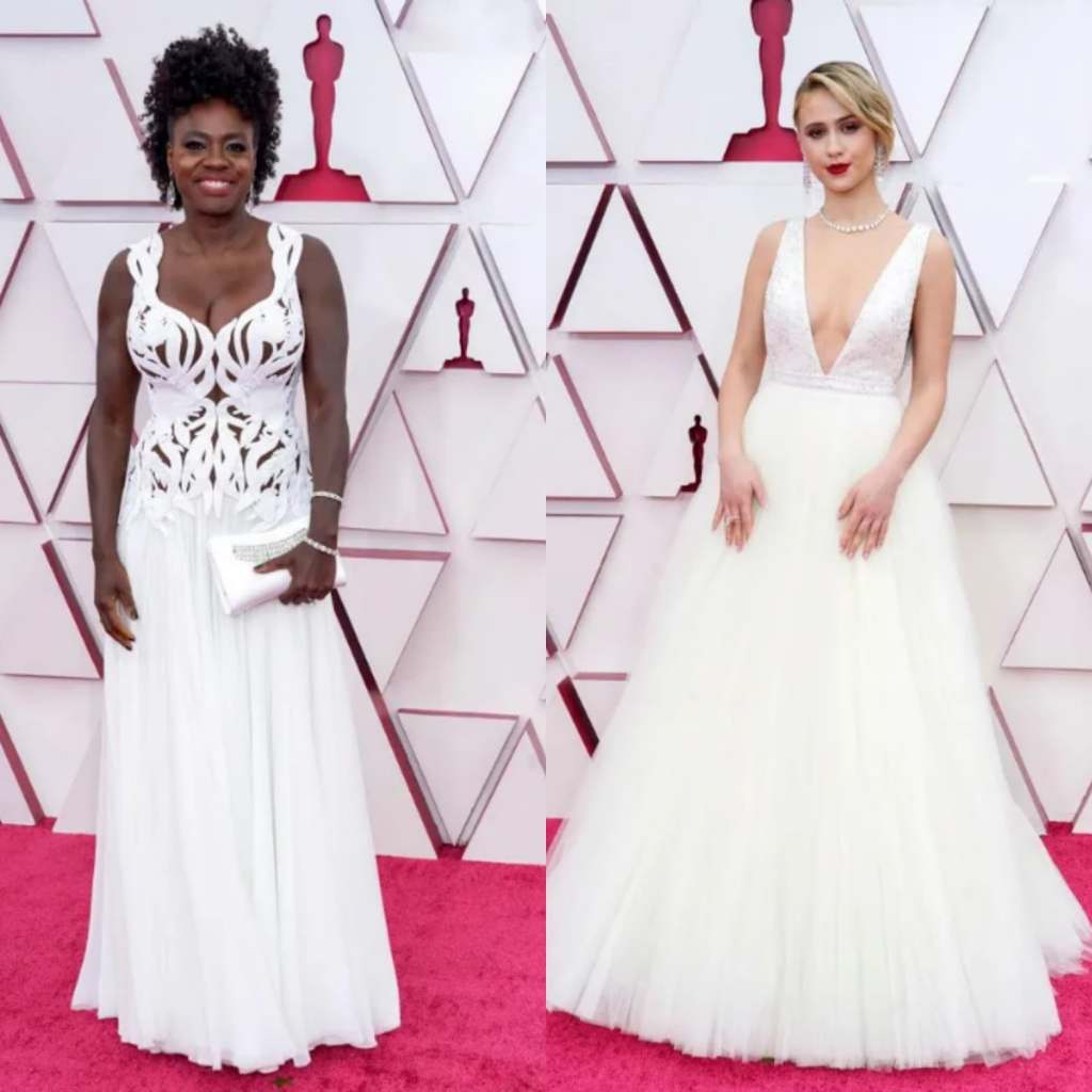 As cores suaves que remetem leveza e otimismo, levando em conta o atual momento de crise, foram uma grande aposta por parte das atrizes e abrilhantou o espetáculo. Viola Davis, uma das indicadas pelo filme “A Voz Suprema do Blues”, escolheu um vestido branco de Alexander McQueen com um toque mais sensual e decote em ênfase. Já a búlgara Maria Bakalova, nomeada por sua atuação em “Borat 2: Fita de Cinema Seguinte”, optou pelo visual princesa com um vestido clássico da Louis Vuitton.