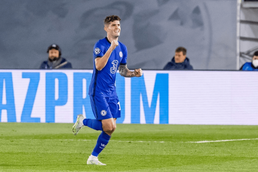 O primeiro tempo começou com um domínio predominante da equipe do Real Madrid, que, aos quatro minutos, possuía 78% de posse de bola contra 22% do Chelsea. Porém a rede balançou pela primeira vez aos 13 minutos, com gol da equipe inglesa: Rüdiger lançou nas costas de Varane para Christian Pulisic, que driblou o goleiro Thibaut Courtois e abriu o placar a favor da equipe do Chelsea. Com o seu gol, Pulisic se tornou o primeiro jogador dos Estados Unidos a fazer um gol pelas semifinais da UEFA Champions League.