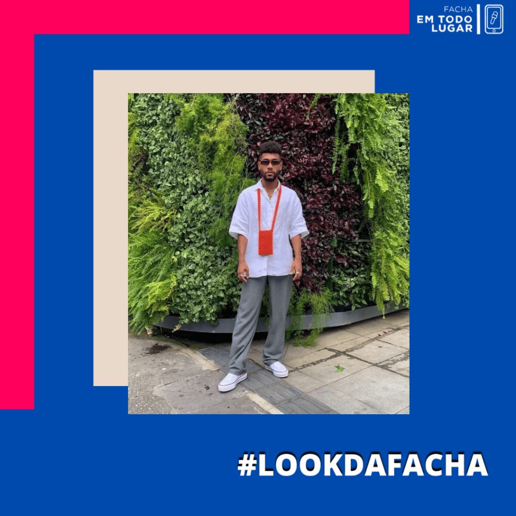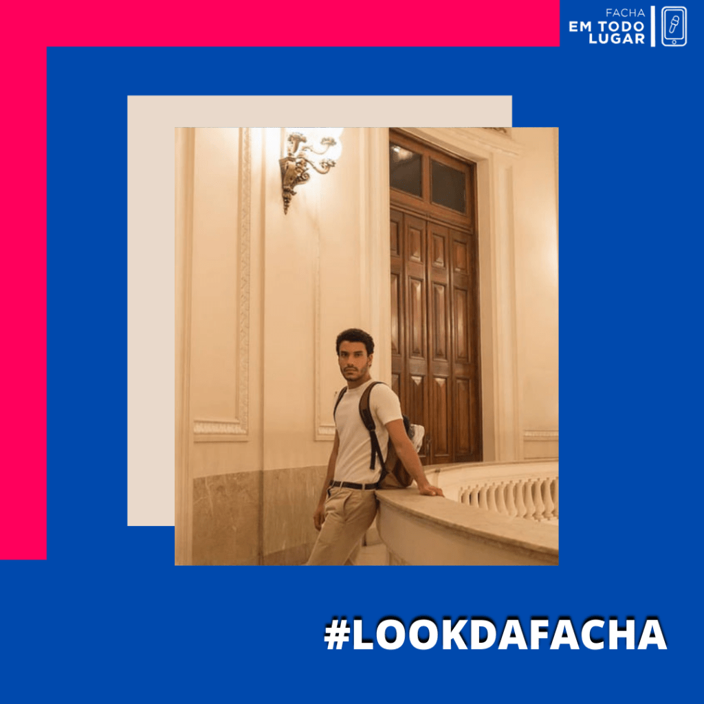 Uma curiosidade sobre o look é que a blusa, na verdade, é um vestido que o estudante comprou na loja Forever 21, o tecido era quentinho então Tiago resolveu usar por dentro da calça. E parece que deu super certo, não é?