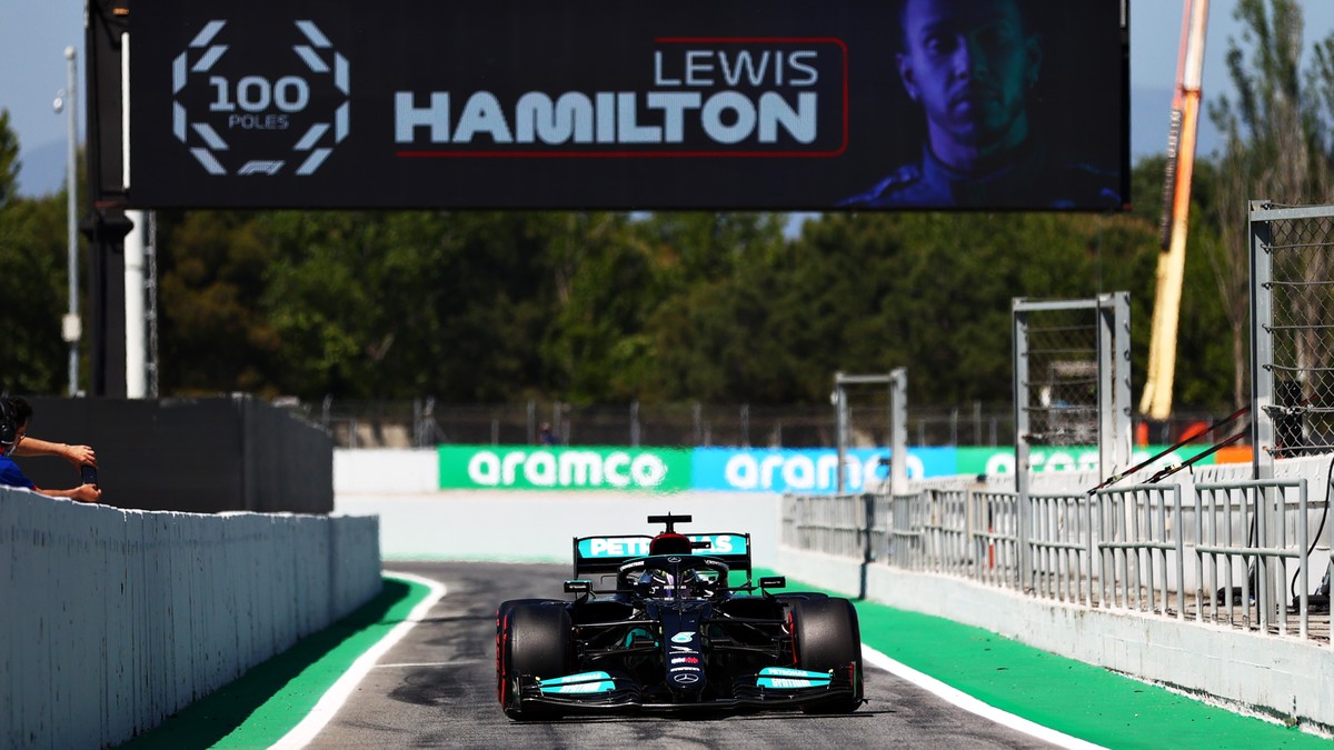 No sábado (08/05), ao final do treino classificatório, Lewis Hamilton conseguiu mais uma marca histórica: chegou a 100ª Pole Position na carreira, ao marcar o tempo de 1m16s741, ainda na primeira tentativa do Q3. A marca, que até pouco tempo atrás era considerada praticamente impossível de ser batida, foi bastante comemorada pelo piloto, que fez um post nas redes sociais agradecendo aos integrantes da Mercedes:
