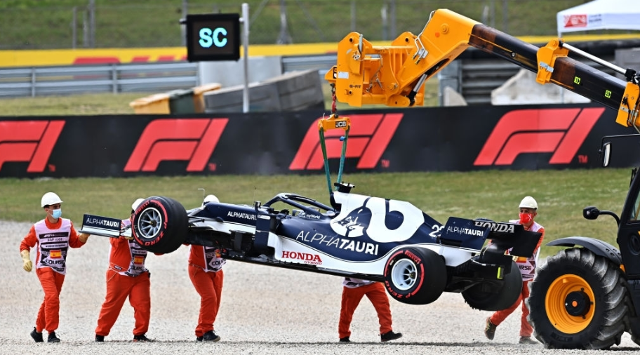 Na 9ª volta da corrida, a AlphaTauri do japonês Yuki Tsunoda teve problemas mecânicos e apagou no meio da pista, fazendo com que o piloto, que estreou na Fórmula 1 nesta temporada, abandonasse a corrida.