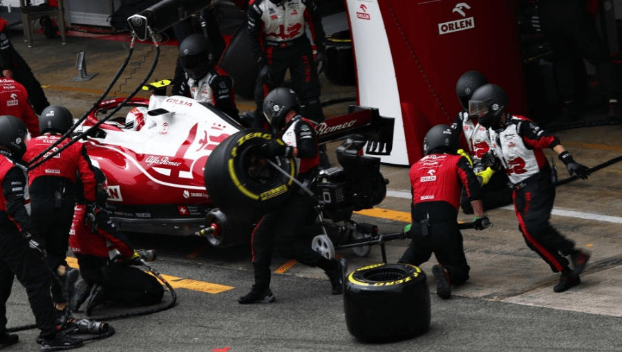 Por conta do problema da AlphaTauri de Tsunoda, a direção de prova decretou que o carro de segurança entrasse na pista, ainda na 9ª volta do GP. Com isto, grande parte das equipes solicitou que seus pilotos entrassem nos boxes para realizarem a primeira troca de pneus. Durante este pit stop, o italiano Antonio Giovinazzi, da Alfa Romeo, teve grandes problemas: sua equipe atrapalhou-se na hora de realizar a mudança de pneus, e sua parada levou cerca de 54 segundos, uma demora muito maior do que o esperado por todos.