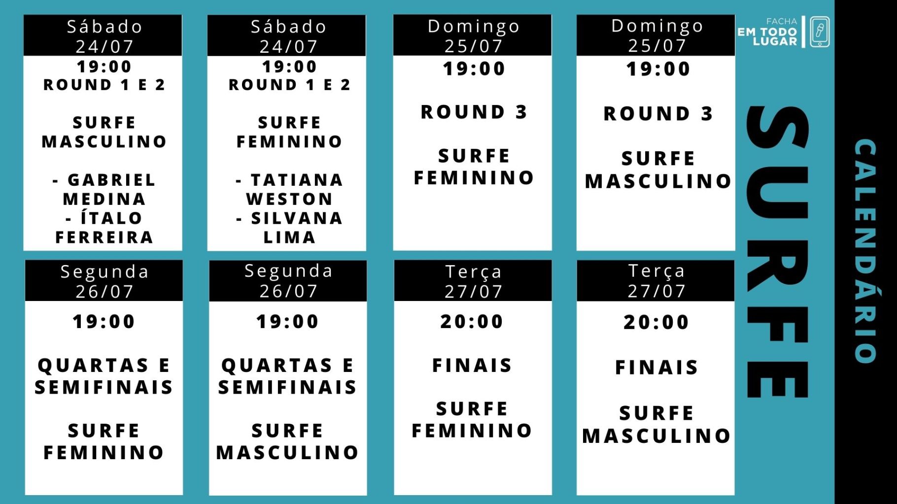 O surfe é outra novidade do programa olímpico. Reforçando a ideia do COI (Comitê Olímpico Internacional) em tornar a competição mais atraente ao público jovem, o surfe fará sua estreia em Tóquio. E o Brasil tem grandes chances de medalhas.