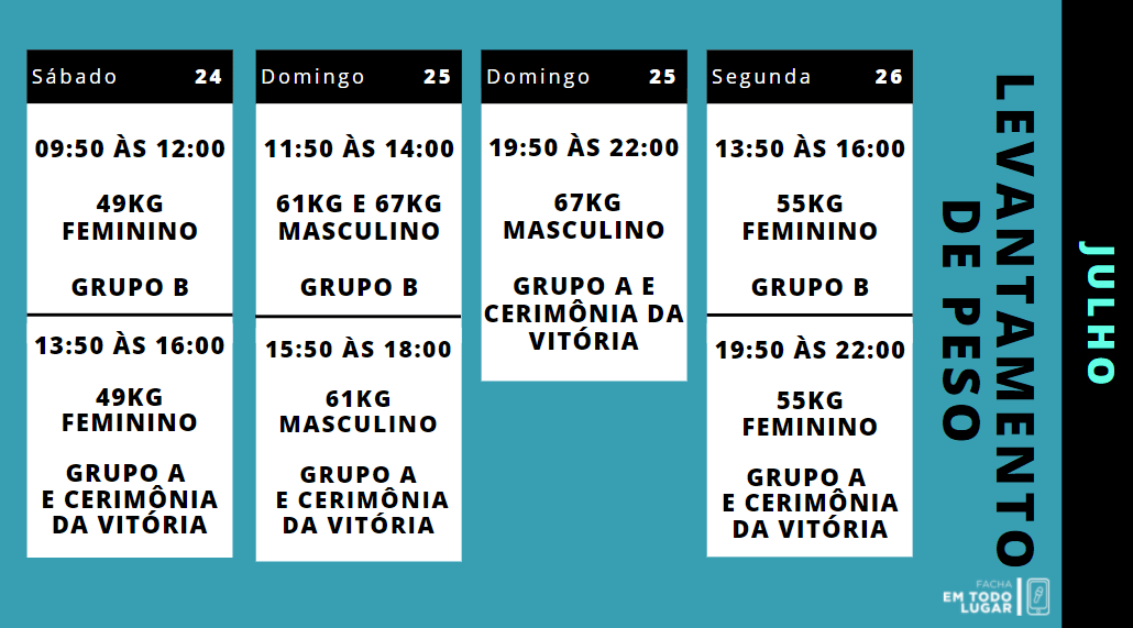Calendário (dia e horários locais de Tóquio)