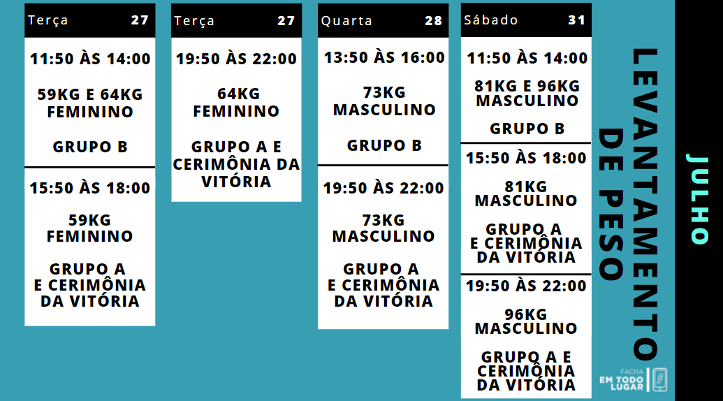 O Fórum Internacional de Tóquio será a sede do levantamento de peso nos Jogos Olímpicos. A lista completa dos locais de competição você pode acompanhar nesse link, que faz um panorama completo sobre os jogos!