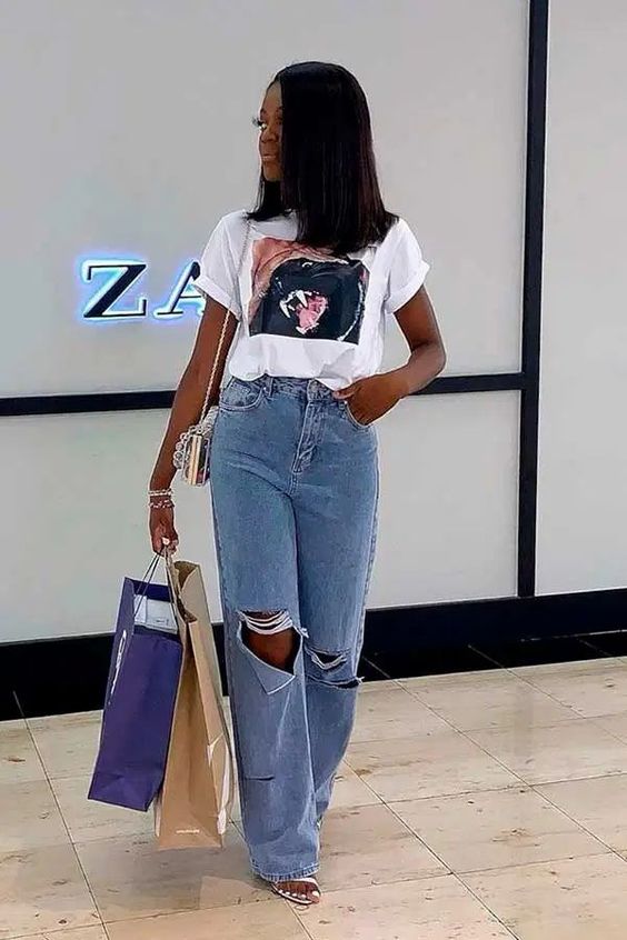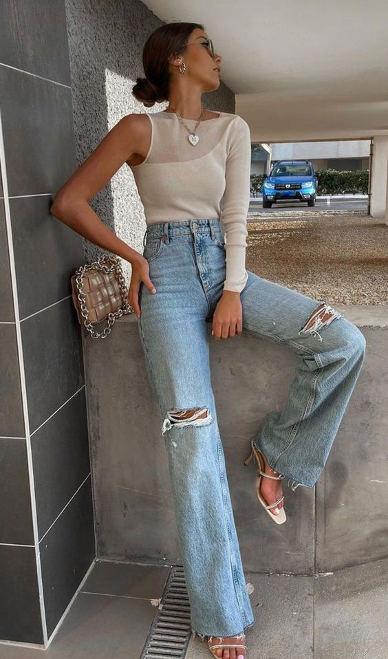 A primeira são as calças jeans com modelagem mais larga, principalmente a Wide Leg, atual queridinha das blogueiras. Com uma modelagem reta que se alarga no final das pernas, a Wide Leg pode ser usada com diversos estilos como o street style, se combinando com uma t-shirt, por exemplo, ou com um tom mais elegante ao ser vestida junto com um salto alto e blusa de transparência.