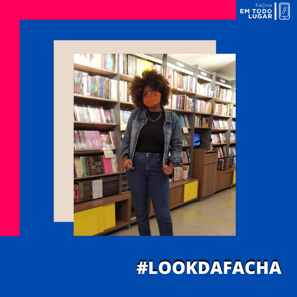 Rafaela Lohana ama ir ao cinema e escolheu esse look para ir ao local, na semana da reabertura, no ano passado. Lohana diz: “Eu adoro esse look, porque é prático e acho que preto deixa tudo mais elegante”. Sobre a escolha das peças de roupa, ela diz: “Eu gosto muito desse estilo de roupa dos anos 90, porque tem cintura alta, e eu gosto muito de cintura alta porque eu me sinto mais segura de poder sair, com liberdade de poder me movimentar e me sentir confortável. O que eu mais gosto numa roupa é me sentir confortável, me sentir elegante”. A estudante complementa e diz que o jeans é uma peça chave pra usar com outros tecidos e cores.