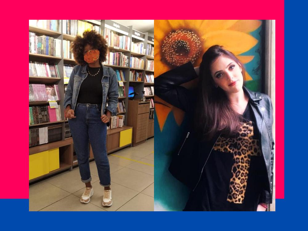 Rafaela Lohana e Valentina Sulan, estudantes de jornalismo, amam peças que foram moda em épocas passadas. Os looks compartilhados pelas estudantes lembram as tendências da década de 1960, com jaquetas de couro preto lembrando o estilo ousado do Rock N Roll, e também da década de 1990, com calças largas e jaqueta jeans. Vem conferir a escolha das futuras jornalistas!