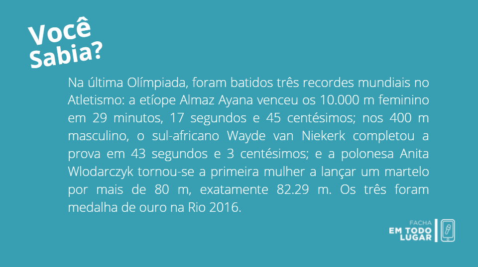 A magia do atletismo, novamente, estará em cena para o mundo poder ver novos recordes serem batidos, novas histórias sendo escritas e muitas emoções em todos os dias de uma das mais aguardadas e tradicionais competições dos Jogos Olímpicos.
