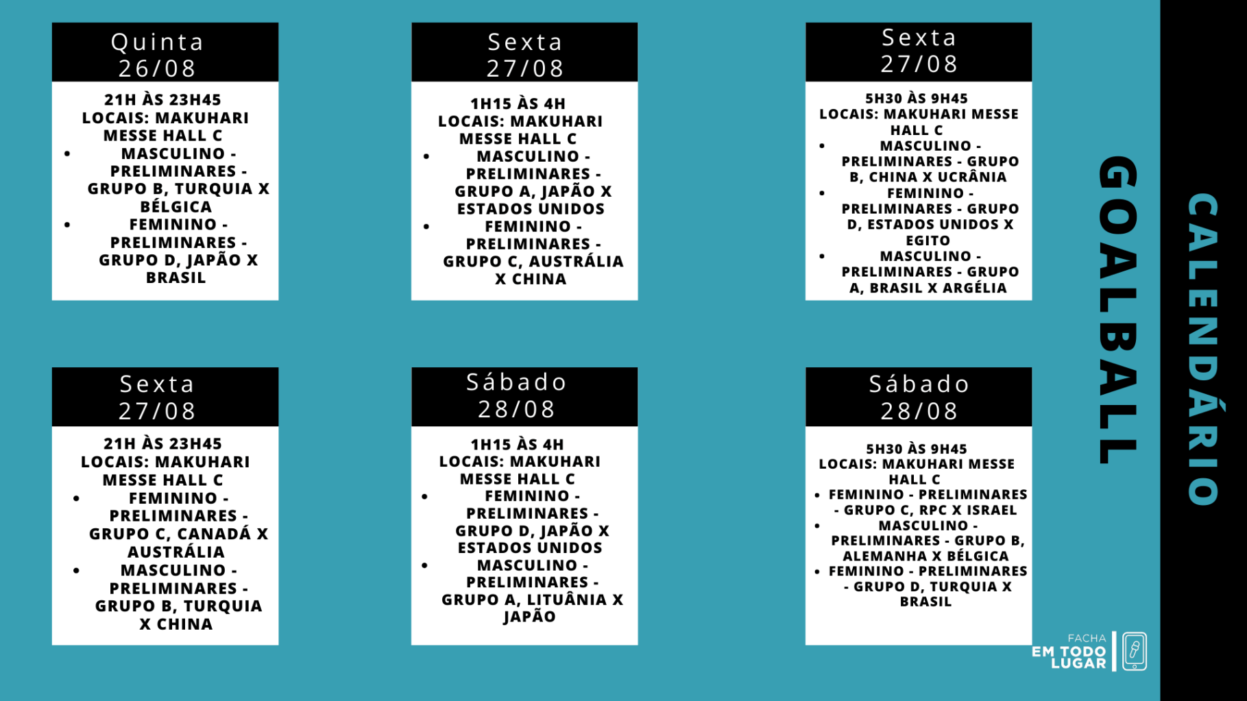 O calendário oficial da competição será entre os dias 24 de agosto e 3 de setembro.