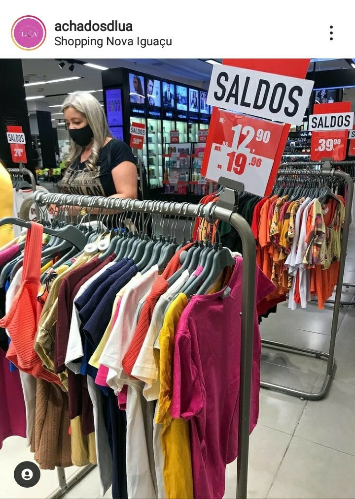 Mas você deve estar se perguntando como ela fica sabendo de todas essas informações, não é mesmo? Bom, uma das coisas mais legais dos achados do insta é que por trás dessas páginas têm pessoas que realmente se dedicam para buscar as melhores indicações e sempre estão pesquisando as sugestões que mais cabem no orçamento e gosto de cada um, no caso da Lua, ela procura as promoções e novidades nas redes sociais das lojas e também vai até os espaços físicos. “Eu fico de olho nas lojas pelo Instagram e sempre que eles postam alguma promoção ou eu vou na loja fazer os achados presenciais ou eu posto pelo Instagram mesmo. Não tem dia específico, eu faço os achados, conforme vai acabando, eu volto nos lugares e faço mais”, contou a estudante. Sobre seus lugares favoritos para encontrar peças acessíveis, Lua é enfática: Nova Iguaçu, Madureira e Saara, tudo no Rio de Janeiro, onde a mesma reside.
