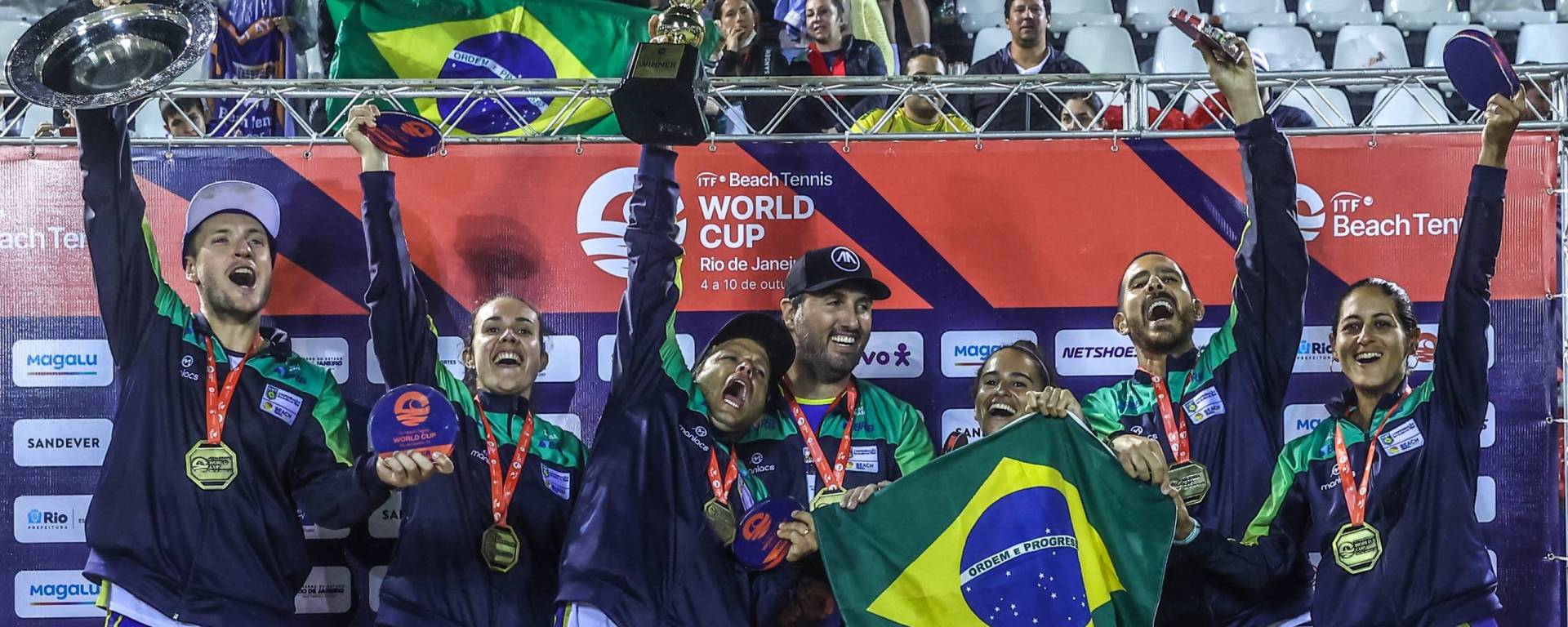 O Brasil é tetracampeão da Copa do Mundo de Beach Tennis. A equipe brasileira venceu a Itália por 2 a 0 na série de melhor de três partidas. O jogo de duplas mistas, que seria o terceiro duelo, não precisou ser realizado. Em uma noite de domingo chuvosa no Setor 2 da Praia de Copacabana, os donos da casa conquistaram o público presente que os apoiou, de maneira intensa, e influenciou no rumo dos jogos. Assim como ocorreu ao longo de toda a semana, ajudando na campanha invicta do time brasileiro.