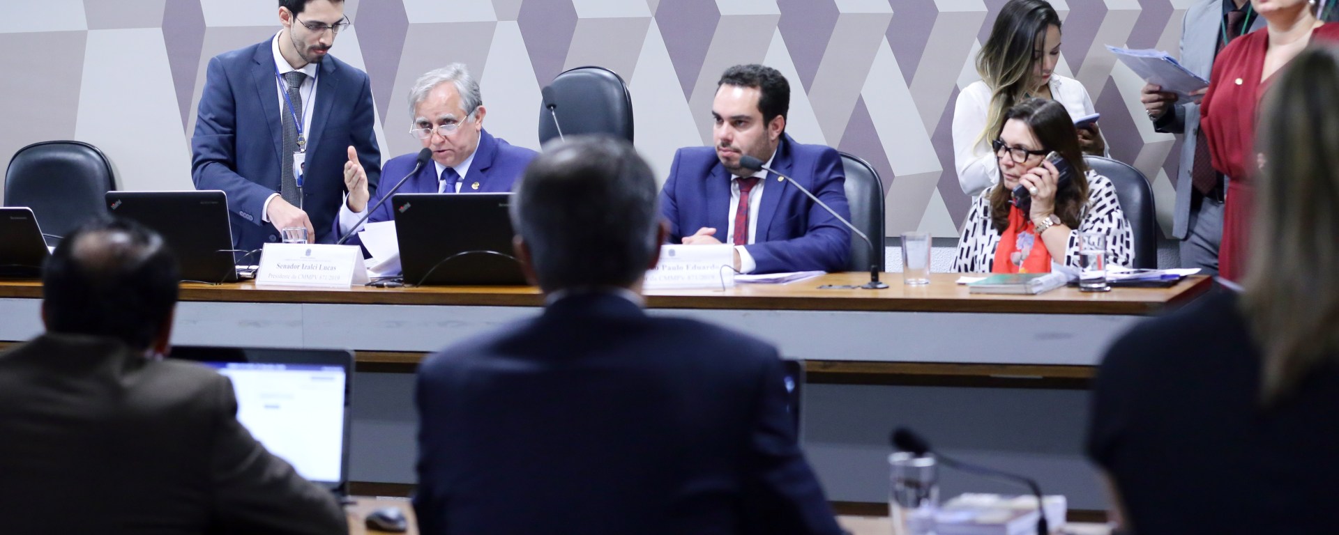 Foto de Capa: Comissão Mista da MP 871/19 em 9 de maio de 2019. Para leitura do parecer, o deputado Paulo Eduardo Martins (PSC-PR) e o senador Izalci Lucas (PSDB-DF), além das deputadas Bia Kicks (PSL-DF) e Joice Hasselmann (PSL-SP), então líder do governo no Congresso. A medida foi convertida pela lei 13.846 de 2019. Foto: Michel Jesus/Câmara dos Deputados.