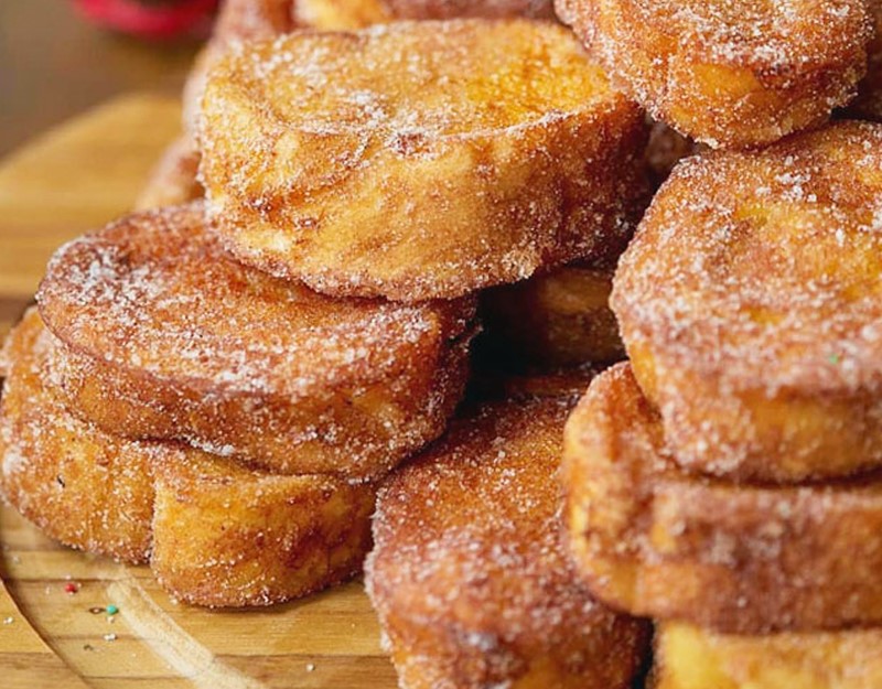 A rabanada é um tradicional doce natalino, feito de pão em fatias que, depois de molhadas em leite ou calda de açúcar, são passadas por ovos e fritas ou assadas.