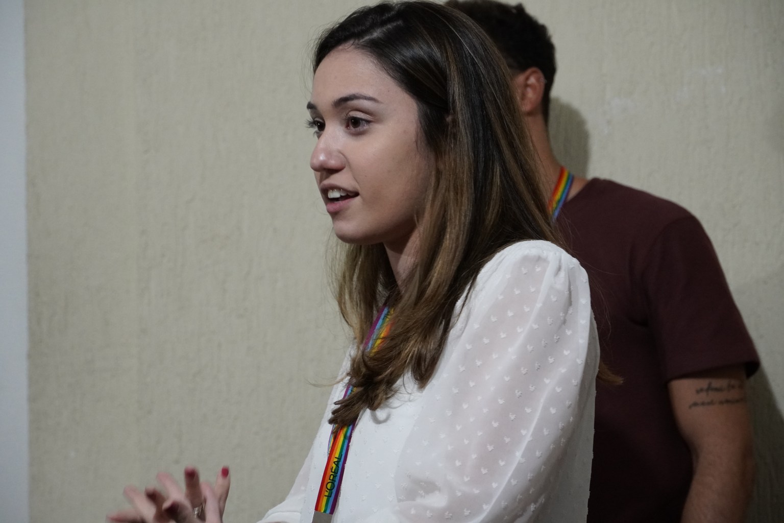 Beatriz Gonçalves e Matheus Bastos na apresentação sobre o Brandstorm 2022 (Fotos: Renata Pfisterer)