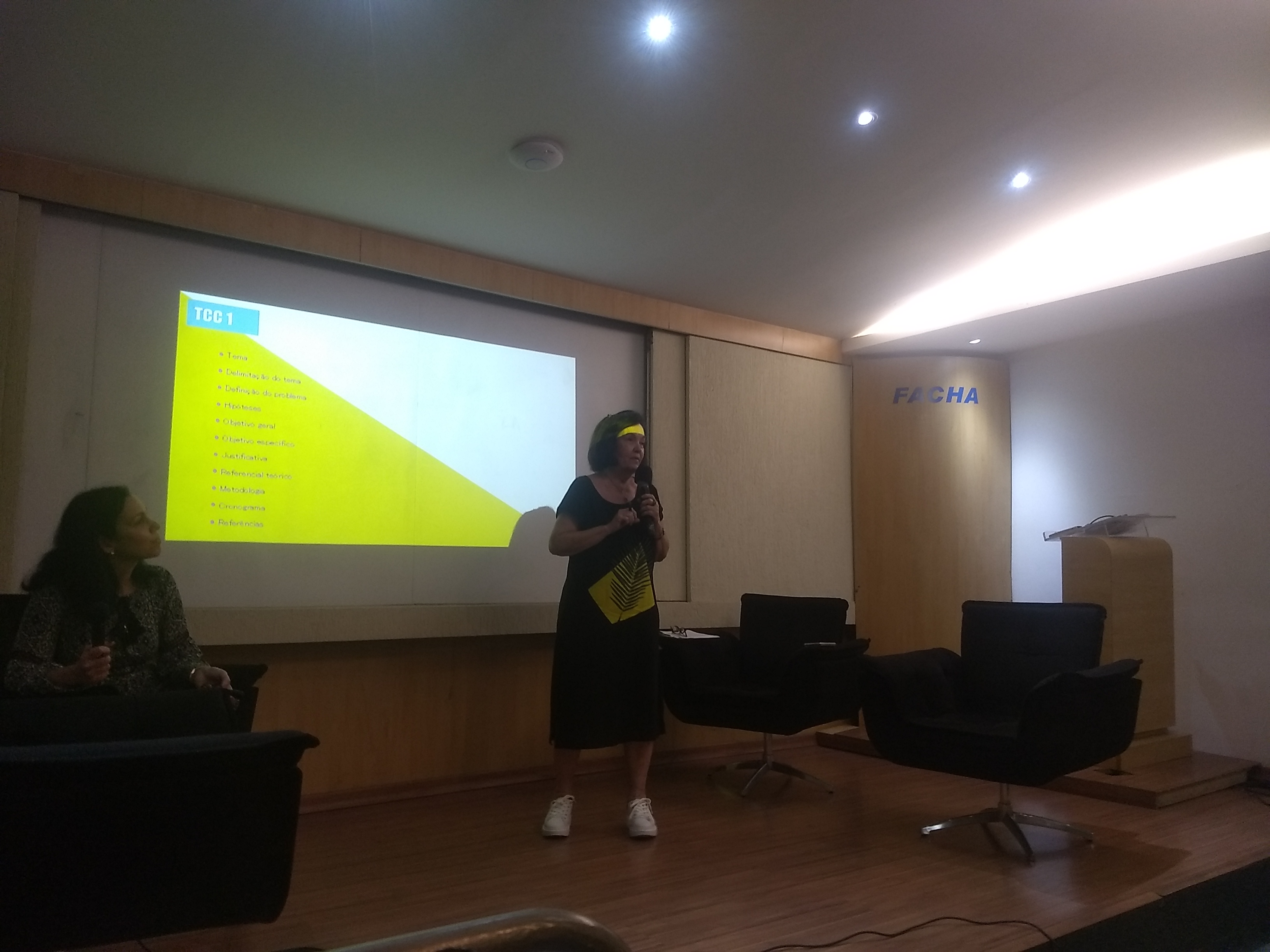 Após a introdução, a professora Ana Paula ressaltou a importância da organização junto com seu orientador, e pediu para que não fujam dele, pois ele está ali exatamente para auxiliar nesse ritual de passagem e encerramento de um dos ciclos mais importantes na vida do estudante. A professora de cinema Nívea Faso, que estava na plateia, deu sua opinião sobre o assunto e saiu em defesa dos alunos, mostrando o outro lado, que é quando o orientador não dá espaço para comunicação com o aluno e, é claro, obteve uma salva de palmas de toda plateia.