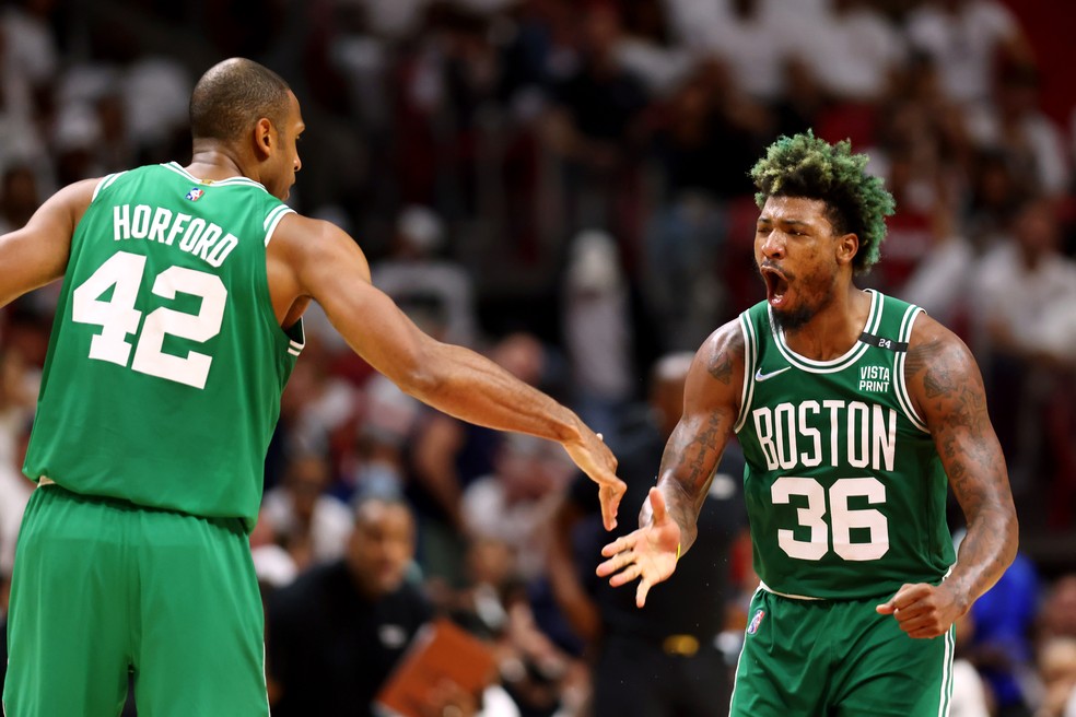 Voltando da lesão que o tirou do jogo 1, Marcus Smart foi o destaque do segundo jogo com uma performance espetacular de 24 pontos, 9 rebotes, 12 assistências, 3 roubos de bola e um toco em 40 minutos de ação. O armador titular dos Celtics demonstrou-se muito confortável arremessando de fora do perímetro (5-12 em aproveitamento nas bolas de três pontos), criou muitos espaços para Tatum e Brown ao atacar o garrafão, atrair a atenção da defesa e realizar o passe no momento certo, além de ter ditado o ritmo para sua equipe no lado defensivo da quadra, ilustrado pelo baixo aproveitamento de Miami em arremessos defendidos por Marcus Smart (apenas 3 conversões em 11 tentativas, totalizando 27%). O camisa 36 teve enorme impacto em diversas áreas no jogo 2 e ficou apenas a um rebote de alcançar um triplo-duplo, que seria o terceiro de sua carreira.
