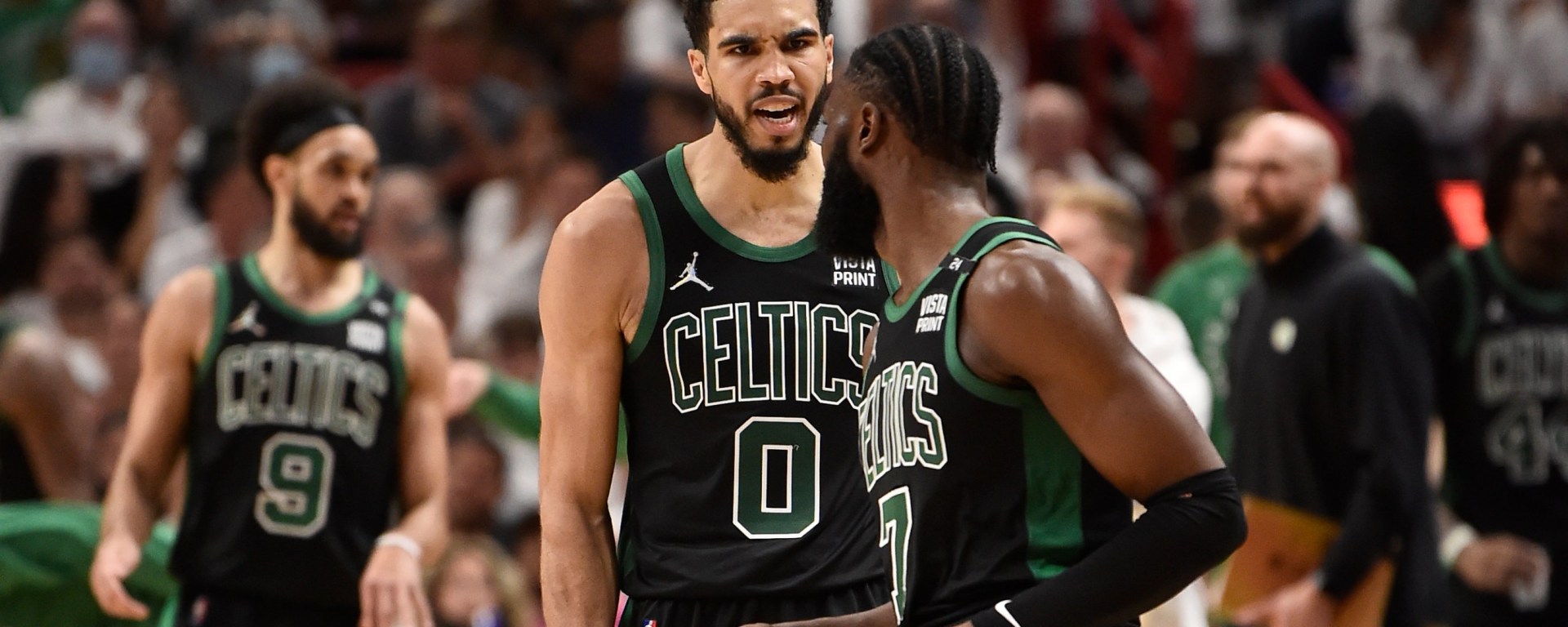 Além disso, o talento das estrelas Jayson Tatum e Jaylen Brown sobressaiu na segunda etapa. Desde o início da série, Jaylen tem sofrido ao proteger a bola contra a agressividade dos defensores do Miami Heat, deixando-a muita exposta, o que ocasionou desperdícios de posses de bola que foram cruciais para as duas derrotas de Boston nas finais até então. Mas no segundo tempo do jogo 5, Brown fez ajustes, usou o corpo para a proteção de bola, respondeu a intensidade defensiva do adversário criando excelentes arremessos de média distância e usando menos dribles para realizar jogadas ofensivas, fatores fundamentais para seus números finais de 25 pontos (10-19 nos arremessos de quadra, 5-9 em bolas de três pontos e nenhum lance livre), sendo 19 registrados na segunda etapa. Apesar do baixo aproveitamento na partida, Jayson Tatum fez o que as grandes estrelas fazem e contribuiu em diversas áreas diferentes para ajudar sua equipe. Tatum finalizou o jogo com 22 pontos (18 no segundo tempo), 12 rebotes e 9 assistências, bem próximo do que seria seu primeiro triplo-duplo na carreira em playoffs.