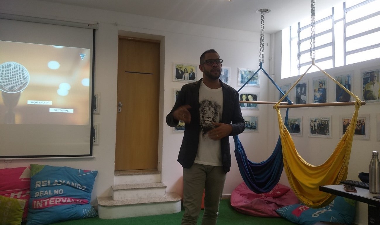 Conrado, em seguida, liderou a segunda parte falando sobre sua trajetória. Formado em jornalismo, ele trabalhou em diversas áreas até chegar na Prudential. Ele comentou sobre a importância da versatilidade de funções que ocupou como repórter, designer, entre outros cargos em sua carreira profissional. O analista senior falou sobre o seu trabalho para ajudar o aumento de visibilidade da seguradora no Brasil.