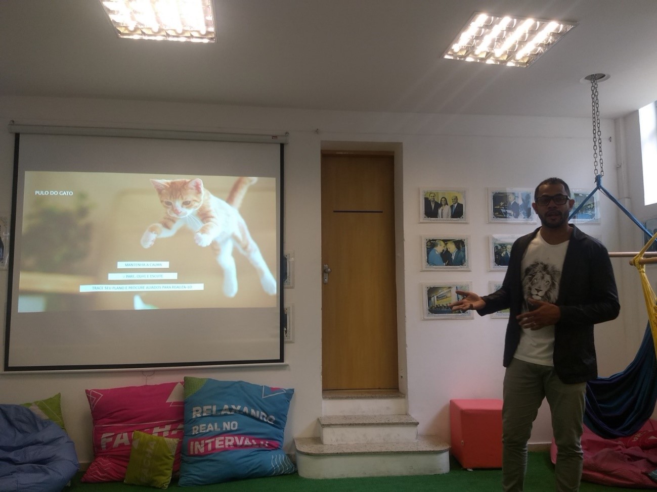 Na segunda parte da aula, Bruno fez uma apresentação das bases gerais dos cursos, mostrando os currículos que os alunos terão durante os períodos letivos. Dois terços dos cursos são feitos em conjunto com todas as matérias sendo ministradas para os três cursos.
