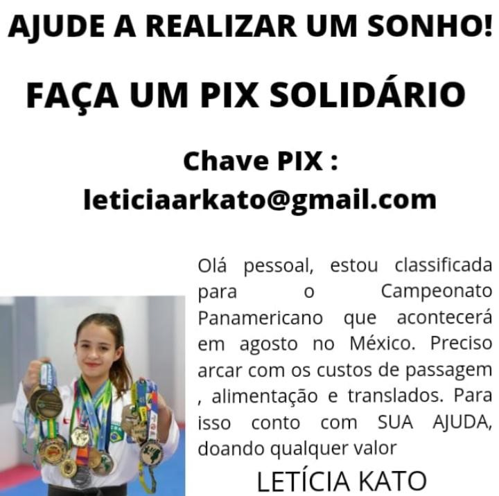 Letícia de Almeida Redondo Kato, atleta de karatê, 16 anos, ganhou medalha de prata nos jogos Sul-americanos da juventude, na Argentina, em Rosário, no dia 4 de maio. Pela seleção brasileira, na categoria júnior 16/17 anos, no peso -63kg.