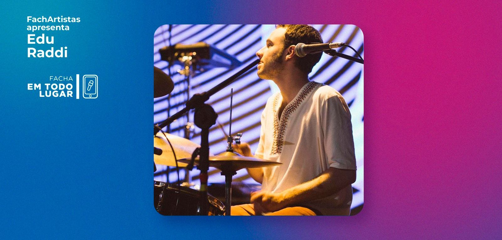 O convidado do FACHArtistas de hoje é Edu Raddi, estudante de jornalismo da FACHA e baterista da banda “O Grito”. Edu tem 25 anos, e foi jogando jogos de ritmo na pré-adolescência que ele descobriu a paixão pela bateria.