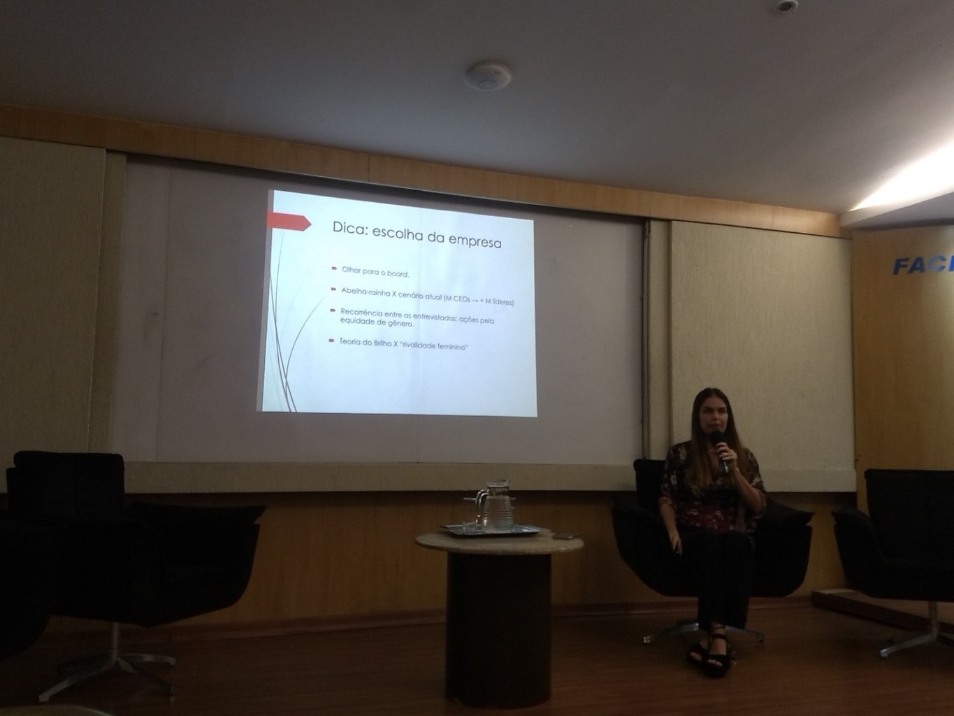 A pesquisadora explicou as barreiras de gênero e falou sobre os vieses inconscientes de gênero que são originários da educação, das experiências vividas, na mídia e na religião e impactam percepções e criam julgamentos inconscientes e instantâneos. Ela explicou que o gerenciamento de percepções, a conscientização para evitar os julgamentos e a criação da cultura da inclusão é importante para superar este obstáculo.