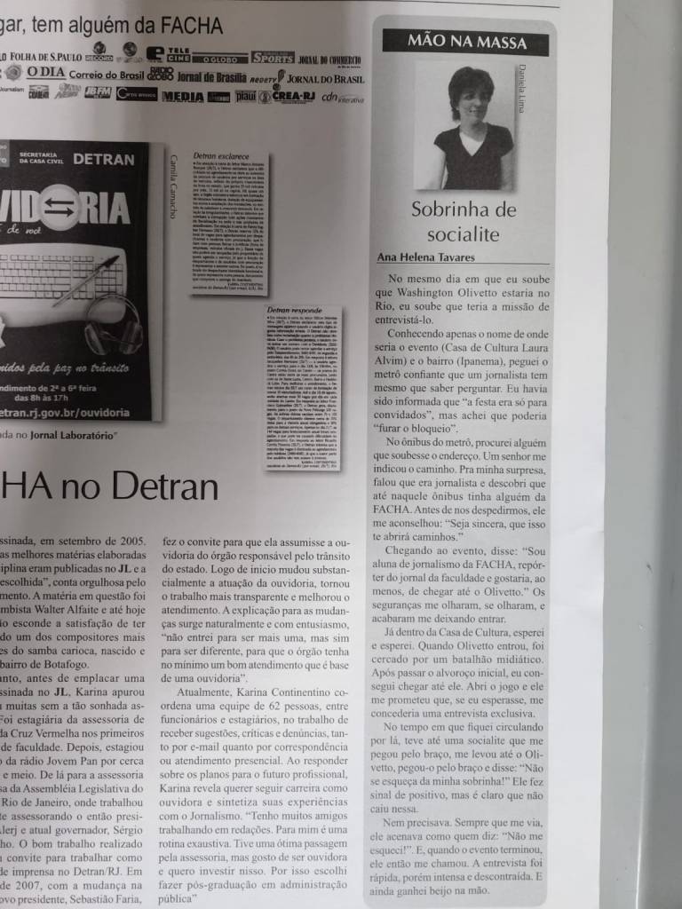 Ana Helena Tavares é diretora de assistência social na ABI (Associação Brasileira de Imprensa). Entrou na FACHA em 2008, mas se formou apenas em 2018, sempre trabalhando com Jornalismo.