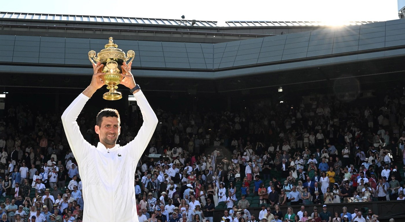 Novak Djokovic conquistou o seu sétimo título em Wimbledon derrotando Nick Kyrgios, de virada, por 3 sets a 1 (4/6, 6/3, 6/4 e 7/6) em exatas três horas de jogo, no domingo (10/07). O australiano começou bem e venceu o primeiro set, mas logo em seguida começou a reclamar do público e do seu próprio staff no box, com isso perdeu o foco e deu oportunidades para Djokovic reagir e virar a partida. Com o título, Djokovic se iguala a Pete Sampras em títulos no grand slam inglês na Era Aberta e fica atrás apenas de Roger Federer (8).