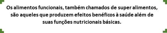 Os alimentos funcionais, também chamados de super alimentos, são aqueles que produzem efeitos benéficos à saúde além de suas funções nutricionais básicas. Ajudam a reduzir os riscos de desenvolver doenças crônicas degenerativas como câncer e diabetes.