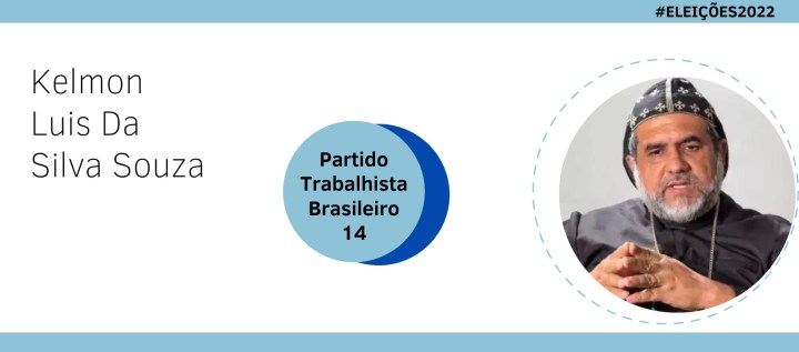 Baiano de 45 anos e candidato à presidência pelo PTB. Fundou e coordena o Movimento Cristão Conservador Latino-Americano e esteve à frente do Movimento Cristão Conservador do PTB. Devido a impugnação da candidatura de Roberto Jefferson pelo Ministério Público Eleitoral (MPE), o PTB nomeou Kelmon Souza para a candidatura.