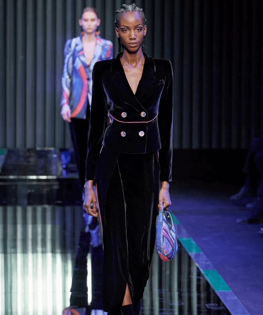 Coleção que priorizou a elegância, sem muito esforços para isso acontecer. Roupas em um tom mais simples, porém bem sofisticadas que trazem uma presença de palco. Com as escolhas de veludo e saias de seda.
