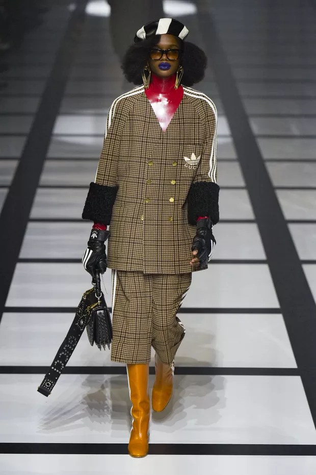 Uma collab inimaginável aconteceu, Gucci continuou com a elegância e cores tradicionais, mas com elementos e toques da Adidas, que trouxe uma modernidade e um ar mais esportivo para as peças.