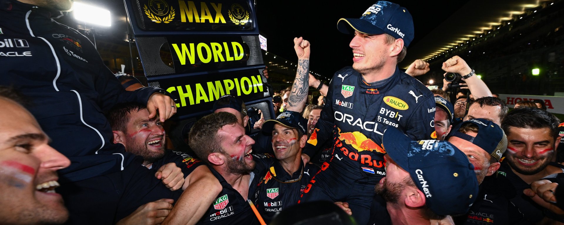 “Como equipe, tem sido uma temporada incrível para nós. Definitivamente não esperávamos algo assim. Tivemos um começo competitivo, mas não conseguimos finalizar duas das três primeiras corridas do calendário, o que não é a melhor maneira de começar a defender seu título. Porém, tivemos uma grande virada, continuamos a acreditar, trabalhar e, principalmente, melhorar o carro, que é a área mais importante. É por isso que estamos aqui hoje… O time cometeu muitos erros nessa temporada. A perfeição não existe, mas estivemos bem próximos a isso na maioria das corridas”, Max Verstappen falando sobre seu domínio na temporada em entrevista após a corrida