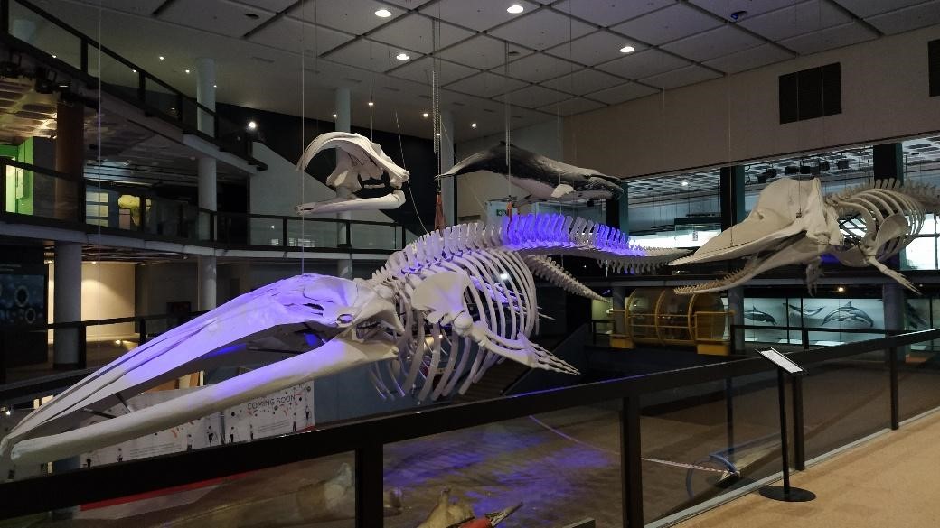 Legenda: Parte do museu destinada a esqueletos de baleias / Foto: Yago Souza